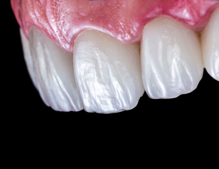 セラミックの中で新しいタイプの素材です。ジルコニアは人工ダイヤモンドであるため、とても硬く、とても耐久性に優れています。強い力をかけても欠けにくいので、奥歯の様な噛み合わせに大きな力がかかる部位にはジルコニアが最適な場合があります。