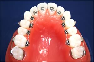 「ブラケット装置」どうしても取り外し式装置が使えない場合や、治療の過程で必要な場合にのみ使います。必要な場合とは、以下のような状態です。